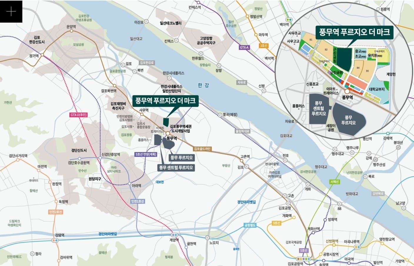 경기도 김포시 고촌읍의 지도를 바꿀 대규모 프로젝트, 한강시네폴리스 일반산업단지 내에 대우건설이 시공하는 프리미엄 주상복합 단지가 들어섭니다.